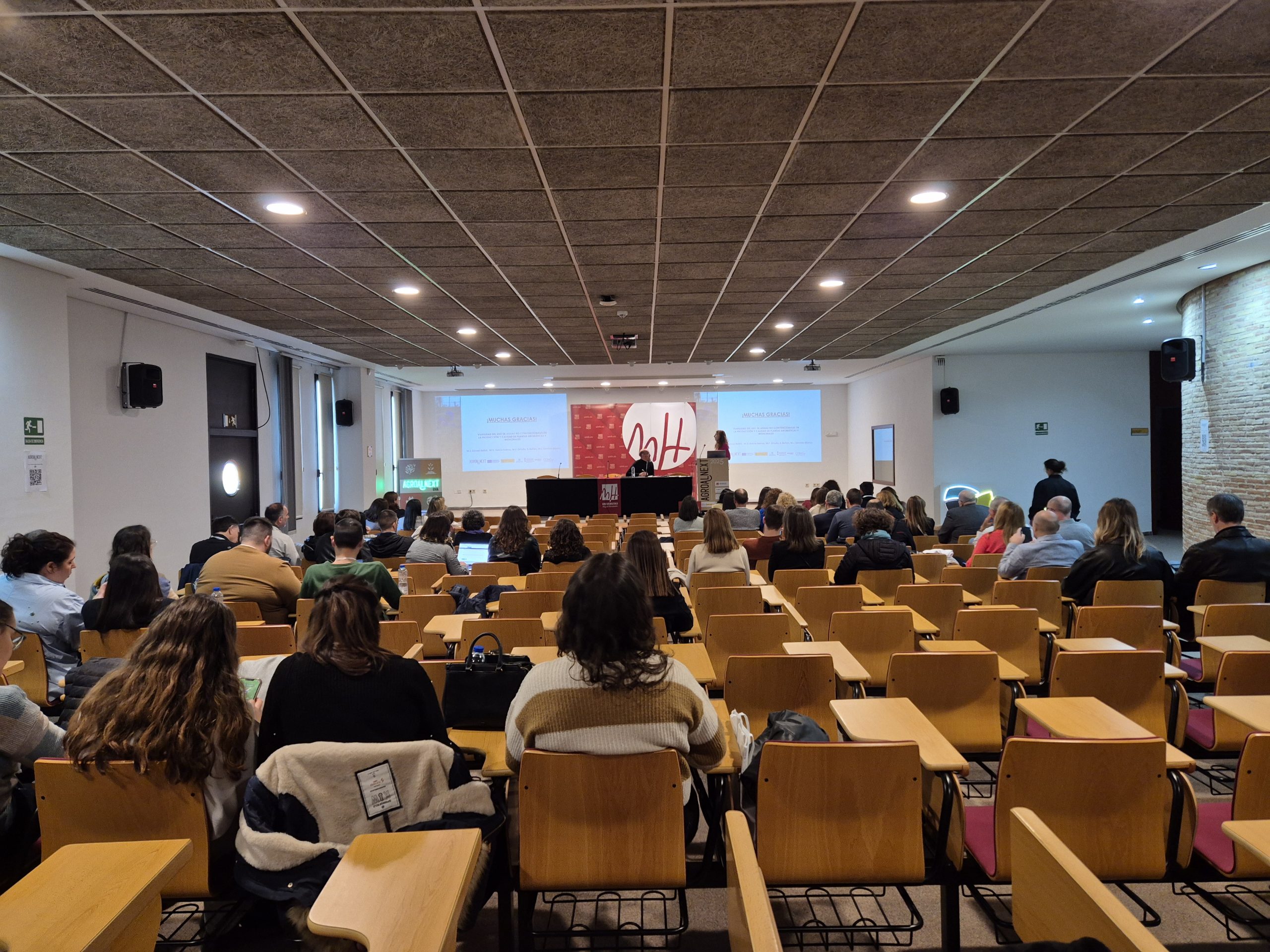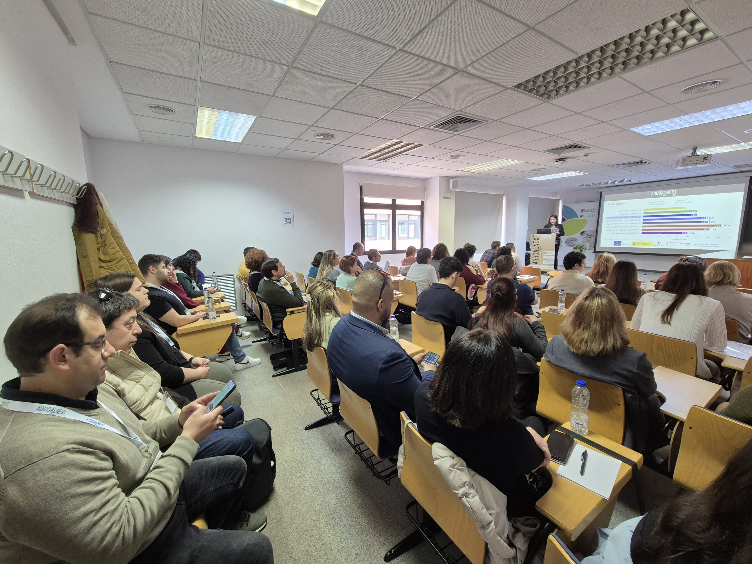 La Jornada del jueves 27 de febrero comenzó a las 9:00 horas con la primera serie de sesiones temáticas, centradas en ‘Garantía de suministro de alimentos sanos, seguros, sostenibles y accesibles’ y ‘Economía circular’, en los Edificios Biblioteca y Tudemir del Campus de Orihuela respectivamente.
